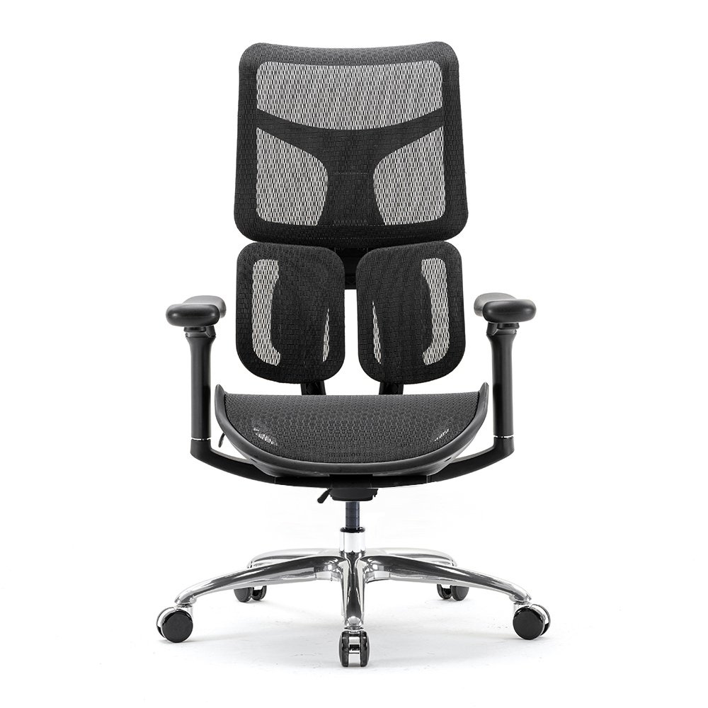 Elegantní konstrukce židle SPINERGO DUAL je dokonale přizpůsobená anatomické stavbě páteře. Vyznačuje se značnou pevností díky ocelové konstrukci, která je kombinovaná s pevným plastem. Opěrák zad je složený ze tří část včetně bederní pružné podpěry tak, aby poskytl maximální oporu v oblasti bederní, hrudní a krční páteře. Opěrák zad nelze naklápět. Podhlavník je výškově nastavitelný pro ještě pohodlnější sezení. Područky se dají nastavit horizontálně i vertikálně. Pro komfortnější nastavení lze upravit hloubku sedáku.