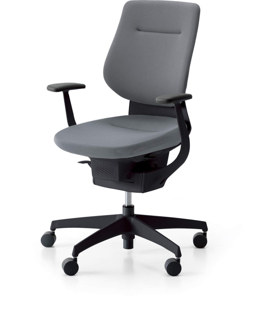 Židle má velmi příjednou čalouněnou opěrku zad. Sedák je potažený textílií ve stejné barvě. Područky jsou pevné, mohou sloužit jako opora při balančním pohybu. Kostra židle v černém provedení. Komfort a pohodlí sezení lze ještě zvýšit možností dokoupením 2D stavitelných područek (za příplatek - najdete v příslušenství).
