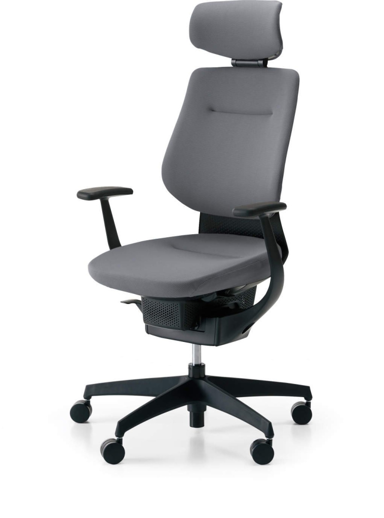 Židle má velmi příjednou opěrku zad z jemné síťoviny. Sedák je potažený textílií v ve stejné barvě jako je barva síťoviny. Područky jsou pevné, mohou sloužit jako opora při balančním pohybu. Kostra židle v černém provedení. Komfort a pohodlí sezení lze ještě zvýšit možností dokoupením 2D stavitelných područek (za příplatek).