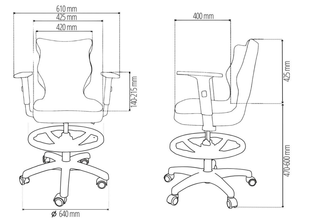 Ergonomicky tvarovaná židle pro děti a mládež o výšce od 159 - 188 cm. Židle je vhodné k psacímu stolu, který má výšku pracovní desky v rozmezí 71 - 82 cm. Lze uzpůsobit výšku židle pomocí plynového pístu, otočná 360° a vybavena plastovými kolečky s gumovou obručí, která jsou vhodná pro tvrdé podlahy.